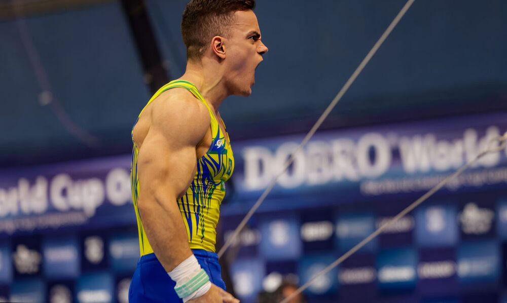 A primeira medalha brasileira neste domingo veio no salto, com Caio. O fluminense alcançou 14.683 de nota, desempenho ligeiramente inferior aos 14.725 da eliminatória (onde foi o melhor), mas suficiente para lhe garantir a prata. O armênio Artur Davtyan, bronze na Olimpíada de Tóquio (Japão) e atual campeão mundial, brilhou com 15.033, assegurando o ouro em Osijek. O cazaque Emil Akhmejanov, com 14.283, completou o pódio, pouco à frente do paulista Yuri Guimarães (14.233), que ficou em quarto.