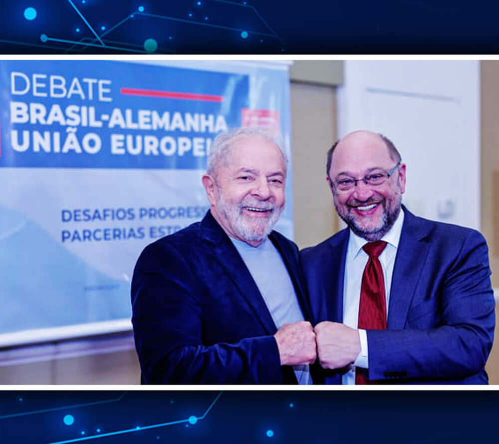 Na mesma ocasião, ao lado do ex-presidente do Parlamento Europeu Martin Schulz, Lula participou do debate “Brasil-Alemanha – União Europeia: desafios progressistas – parcerias estratégicas”, onde compara o bloqueio a Russia com uma arma de guerra.