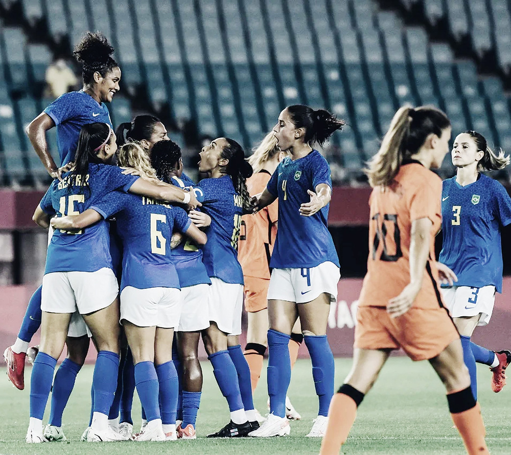 Gols: Miedema, aos quatros, Debinha, aos 16 minutos do primeiro tempo. Miedema, aos 13, Marta, aos 18, Ludmila, aos 22, Janssen, aos 35 minutos do segundo tempo.