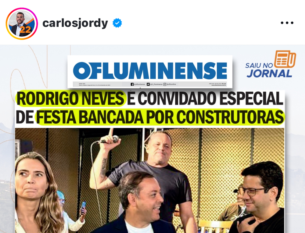 Na representação, a defesa de Neves anexou diversas postagens e matérias jornalísticas provando que as postagens de Jordy eram baseadas em dados inverídicos. Caso a liminar seja mantida, Carlos Jordy poderá ser multado em R$ 30 mil.