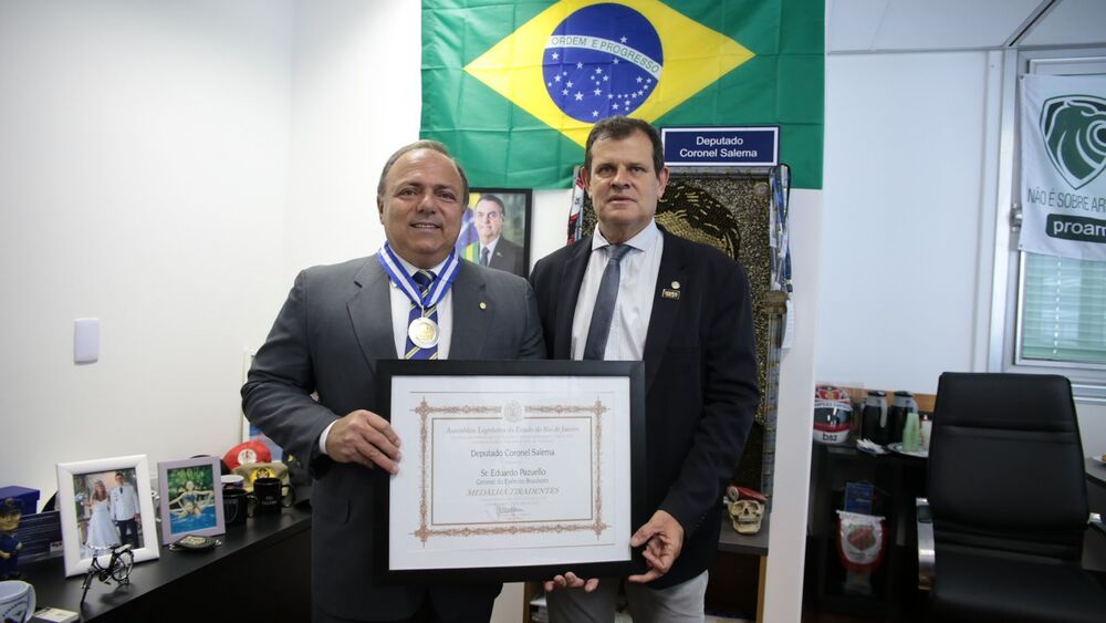 Ministro da Saúde de 2020 a 2021, General Pazuello recebeu, na manhã desta terça-feira, a Medalha Tiradentes, maior honraria dada pela Assembleia Legislativa do Rio de Janeiro (Alerj). A premiação foi oferecida pelo deputado estadual e colega de partido de Pazuello, Coronel Salema (PL).