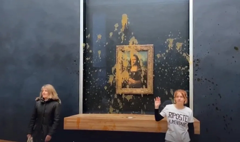 Duas ativistas jogaram sopa em uma das obras de arte mais famosas do mundo, o quadro da Mona Lisa, que fica sob um vidro blindado no Museu do Louvre, em Paris. Um vídeo compartilhado nas redes sociais, mostra o momento exato em que as manifestantes passam por baixo do cordão de segurança e gritam pedindo “alimentação saudável e agricultura sustentável”. O episódio aconteceu neste domingo.