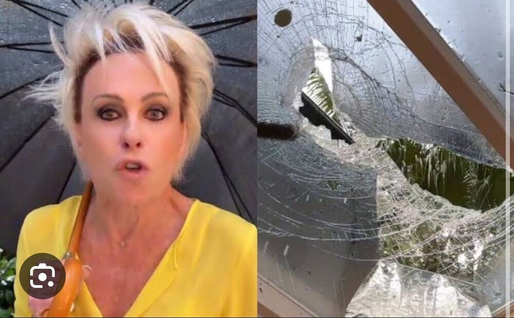 A apresentadora aproveitou para mostrar o estrago que foi feito em um teto de vidro que cobre parte da área externa de sua luxuosa casa.