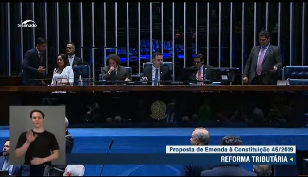 Com quatro votos a mais do que o necessário para aprovar a proposta, o texto-base da PEC da reforma tributária foi aprovado com 53 votos a 24 em primeiro turno e, sem nenhuma abstenção. Uma resolução aprovada na noite de terça, 7, no Senado, garante um calendário especial que permite a votação em dois turnos no mesmo dia. A previsão é que a votação da reforma tributária seja finalizada ainda na noite de hoje.