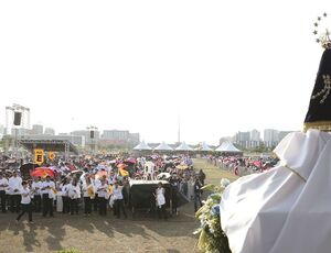 O cantor foi acompanhado pela banda Steve Pegada, arrastando uma multidão pelas ruas da cidade.