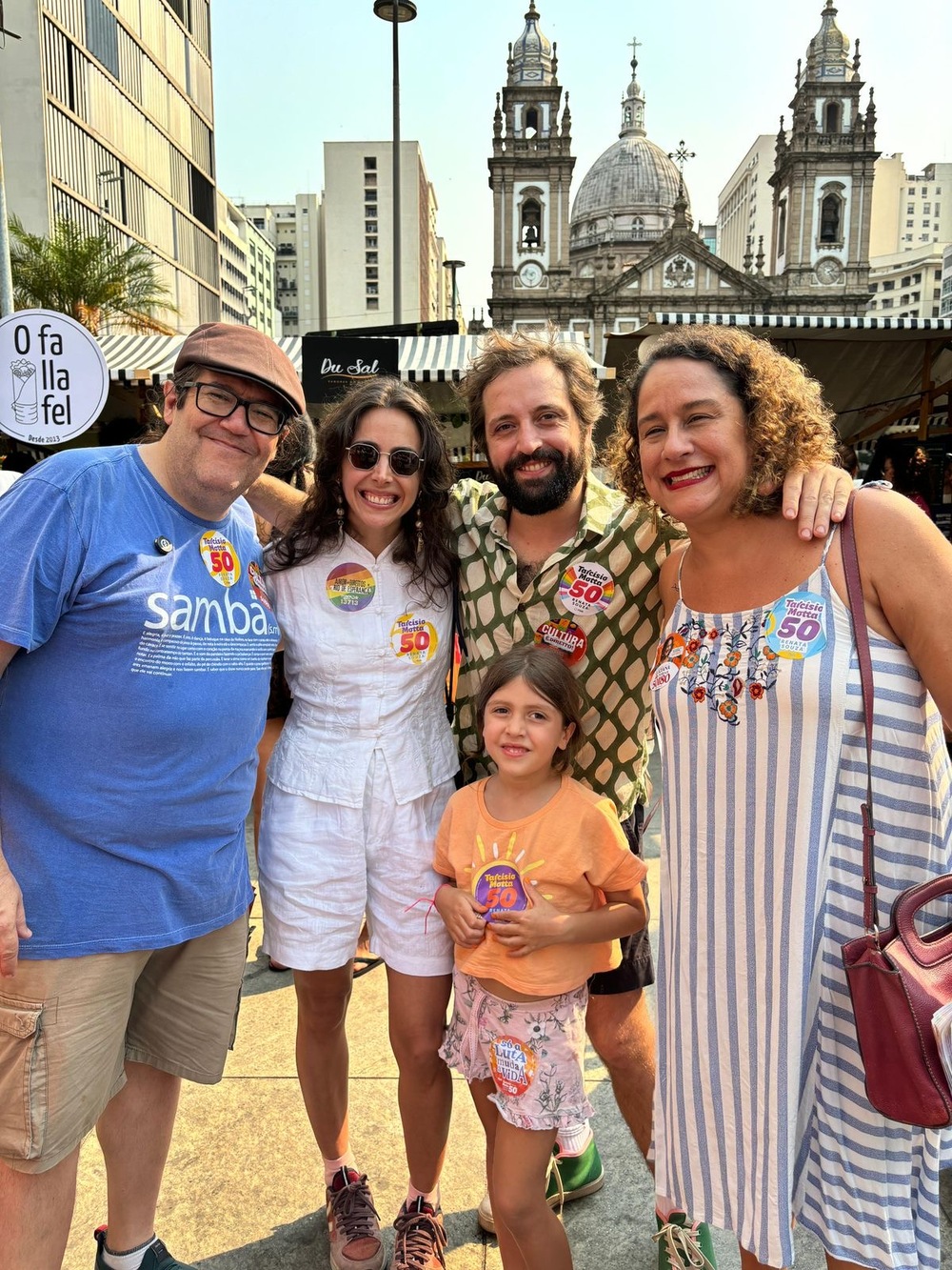 O último compromisso do sábado foi em Madureira. Lá, Tarcísio encontrou sua candidata à vice, Renata Souza, (que, por sinal, está prestes a dar à luz), e as candidatas a vereadoras Mônica Cunha, Mônica Benício e Thaís Ferreira na quadra da Escola de Samba Império Serrano, onde estava rolando a Feijoada Imperial com direito a show do bamba Jorge Aragão. Ou seja, um sábado bem do jeitinho que um bom carioca gosta.