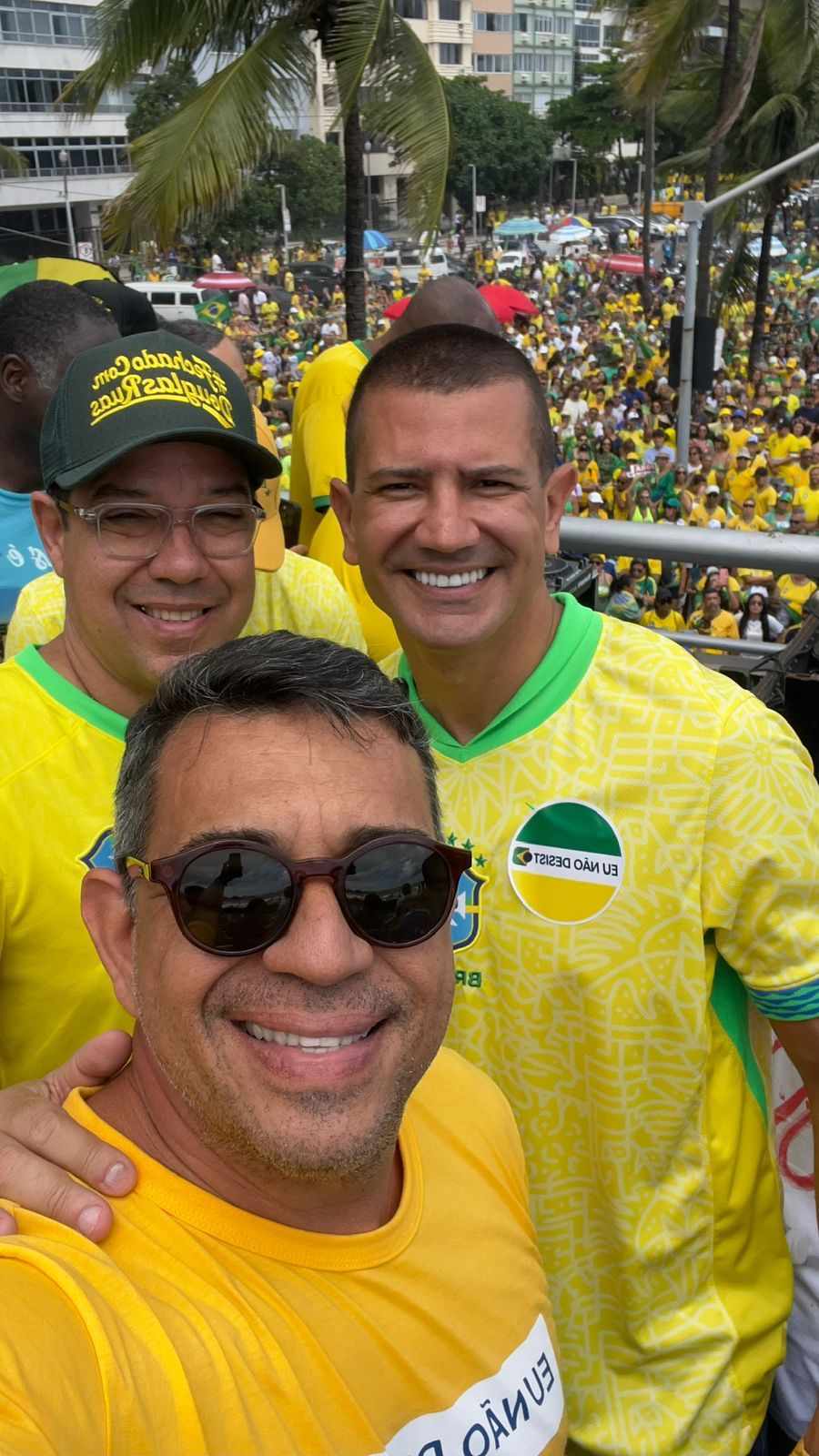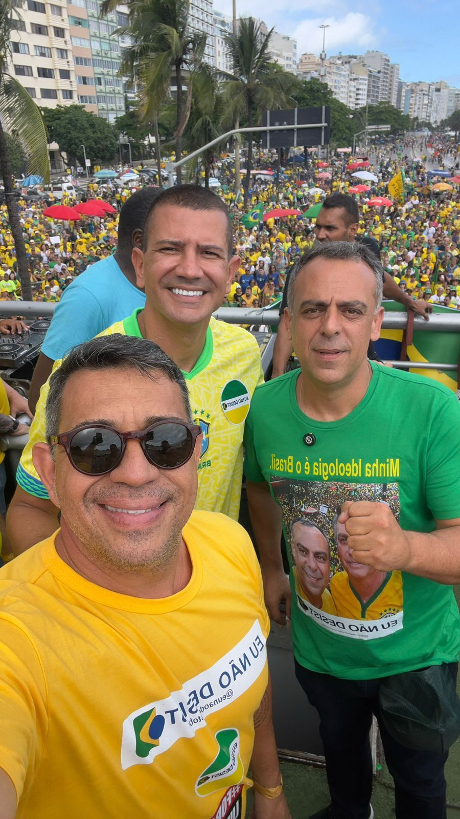 No domingo, dia 1º, também esteve ao lado do deputado federal Altineu Côrtes no trio elétrico que comandou a manifestação realizada em Copacabana, reunindo diversas lideranças da direita carioca.