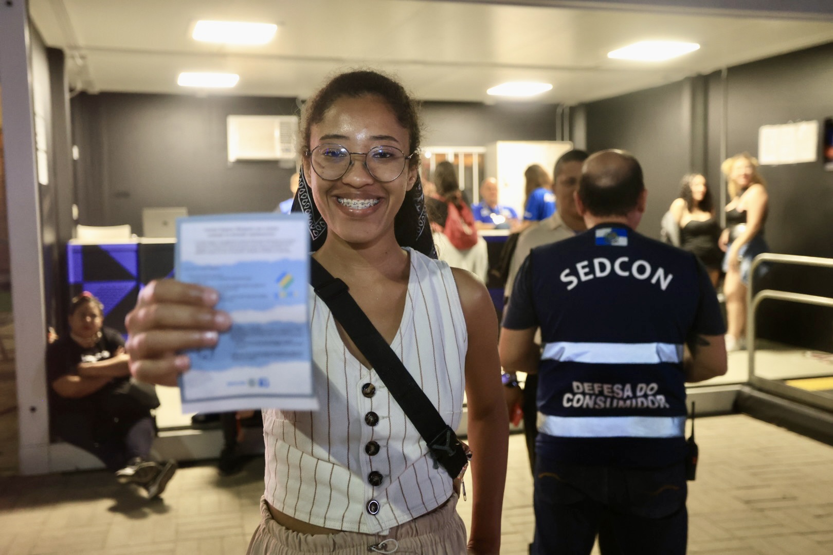 Depois de receber a explicação sobre o uso da plataforma, a assistente de estilo Gabriela Abreu, de 24 anos, contou que se conhecesse o Celular Seguro teria evitado transtornos quando teve o seu telefone furtado em outro show.