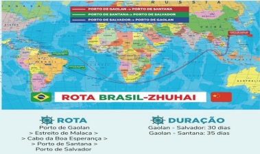 A nova artéria de logística marítima inicia na grande área da Baía de Guangdong-Hong Kong- Macau – região de estratégia nacional e importante centro de negócios do Sul da China, composta por nove cidades da província de Guangdong, e pelas Regiões Administrativas Especiais de Hong Kong e Macau -, e vai diretamente para o Porto de Santana e Porto de Salvador, no Brasil. Além de fornecer assistência precisa, estável e diversificada, a viagem Zhuhai-Brasil servirá como uma solução de logística completa para mercadorias a granel, como produtos agrícolas e minerais, bem como mercadorias em contêineres, como produtos eletrônicos, equipamentos, máquinas, etc.