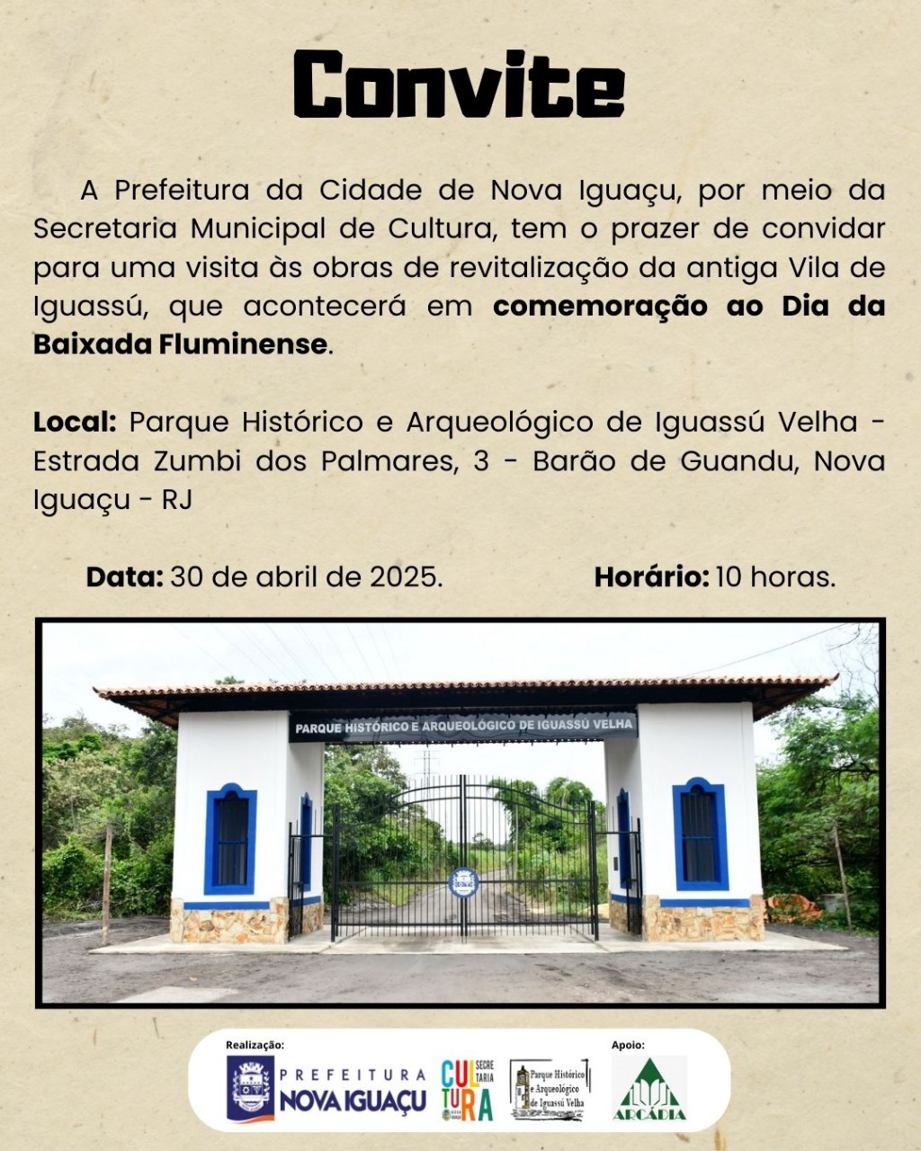 "Faça chuva ou faça sol, venha comemorar com a gente o Dia da Baixada Fluminense visitando as obras de revitalização da antiga Vila de Iguassú", convida a administração municipal em comunicado oficial sobre o evento. A antiga vila, que deu origem ao município de Nova Iguaçu, guarda importantes registros da ocupação da região desde o período colonial, incluindo casarões, igrejas e estruturas que testemunharam séculos de desenvolvimento econômico e social. O projeto de restauração segue rigorosos protocolos de preservação histórica, mantendo características arquitetônicas originais enquanto adapta os espaços para novos usos culturais e educativos, em um diálogo entre passado e presente que valoriza a identidade local.
