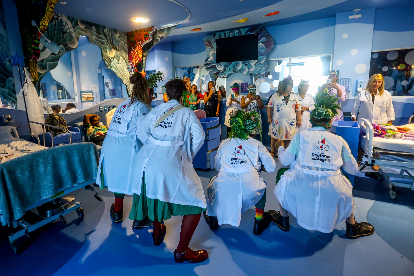 Além do Plateias Hospitalares, o Carnaval dos Doutores da Alegria também acontece por meio do projeto Palhaços em Hospitais. No dia 10 de fevereiro, às 9h30, a ação será realizada no Hospital Jesus, em Vila Isabel, e no dia 11 de fevereiro, no Hospital Getúlio Vargas Filho, em Niterói. Nessas datas, o Bloco Segura Essa Onda, formado pelo quarteto de palhaços Doutores, leva música e humor aos corredores hospitalares.
