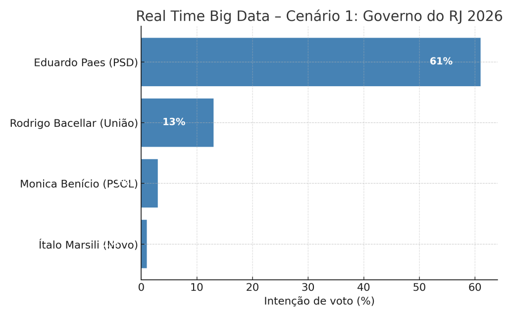 O cenário político fluminense para 2026 começa a ganhar contornos mais definidos, com Rodrigo Bacellar, presidente da Assembleia Legislativa do Rio de Janeiro, consolidando-se como a principal alternativa de oposição a Eduardo Paes na disputa pelo governo estadual. Segundo pesquisa do instituto Real Time Big Data divulgada nesta quinta-feira pela CNN Brasil, Bacellar emerge em segundo lugar em múltiplos cenários, sinalizando o crescimento de uma candidatura que pode representar a renovação política no estado.