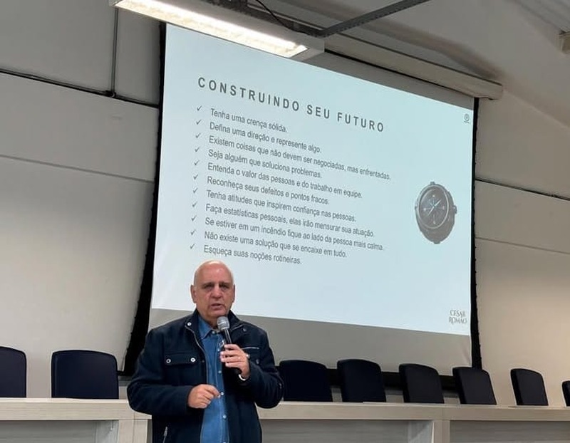 Conferencista Cesar Romão fazendo exposição de sua palestra.