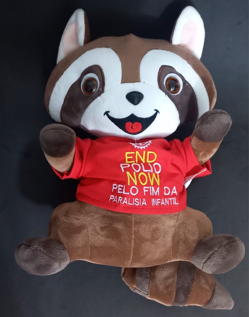 Guaxinim Percy, símbolo do Distrito 4420, escolhido como Mascote da Campanha de Combate à Pólio, entregue ao Conferencista pela esposa do Governador Maria Angélica Pirola.