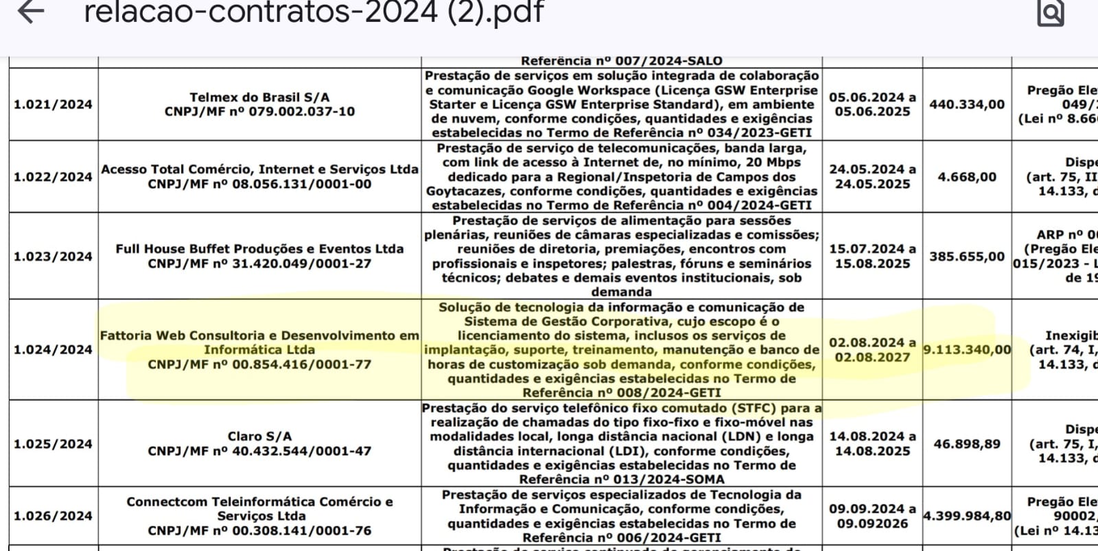 Annibolete, finaliza reiterando o pedido de Auditoria do CONFEA e da MÚTUA/Nacional no CREA/RJ, que passa por séria crise institucional prejudicando profissionais e empresas. É necessário que seja verificada a funcionalidade do sistema eletrônico; a revisão do contrato por inexigibilidade de R$ 9.113.340,00 com a FATTORIA WEB; os repasses de verbas para o CONFEA e MÚTUA, dentre outros tópicos importantes para lançamento em relatório, já que em ano eleitoral esse cuidado é importante, pois, "Prevaricação e Improbidade Administrativa", é algo preocupante para qualquer gestor ou cidadão com interesses eleitorais.