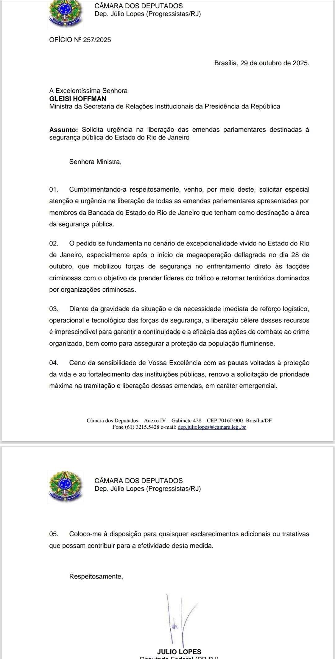 - Vou solicitar hoje uma audiência com o ministro Lewandowski para que possamos debater mudanças na lei que classifica crimes de terror. Se a população é atacada sem motivo, sem reação, temos que considerar como crime de terror. No ano passado entreguei ao ministro da Justiça e da Segurança Pública, Ricardo Lewandowski, um pedido para que haja uma mudança no enquadramento da lei do terror, para que 9 governo federal tenha a obrigação de intervir imediatamente com a polícia federal, forças armadas e com os meios que dispõem. Essa história de GLO é uma bobagem.