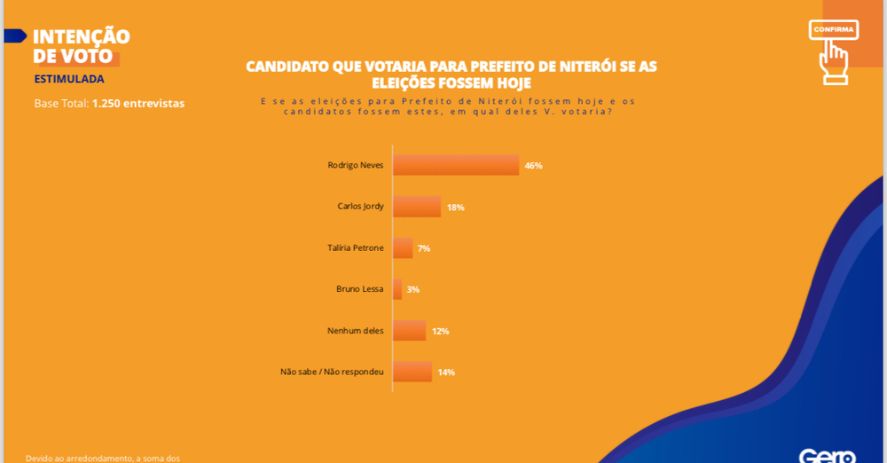 O Instituto Gerp entrevistou 1250 eleitores em Niterói. A margem de erro é de 2,83% e o intervalo de confiança de 95%. A pesquisa foi registrada no TSE com o número RJ-01315/2024.