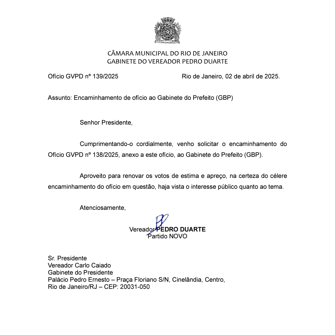 Na justificativa do ofício encaminhado ao prefeito, Duarte alega: “ É fato notório que o imóvel localizado na rua Praia do Flamengo n° 132, pertence a União Nacional dos Estudantes (UNE). Este imóvel, apesar dos esforços do governo federal e do próprio município do Rio de Janeiro, se encontra abandonado há décadas e com obras paralisadas há oito anos, degradando a região como um todo”.