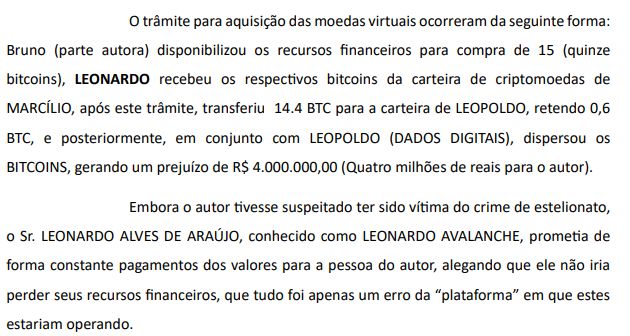 Além disso tudo, pesam contra Avalanche várias acusações de estelionato anteriores a sua eleição, como suposta fraude descrita em Ação Monitória, ao supostamente se passar por consultor de investimentos - também sem qualquer experiencia no ramo, oferecendo ao investidor Bruno Iath em 2020 operações financeiras em criptomoedas, que lhe trariam grande resultado muito acima da média de mercado.