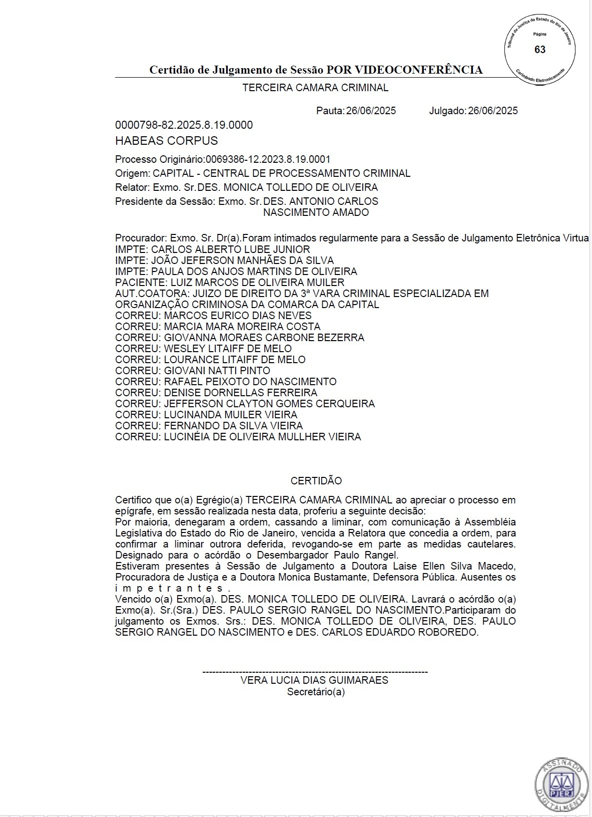 O encontro contou também com a presença de Konder, descrito como aliado e estrategista político do atual gestor municipal. No dia seguinte, 26 de junho, esses mesmos magistrados votaram pela cassação da liminar que garantia o mandato parlamentar a Miller.