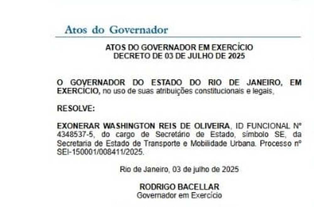 A medida foi datada de Rio de Janeiro, 03 de julho de 2025, confirmando que Bacellar não hesitou em usar sua posição interina para promover mudanças estruturais no governo estadual.