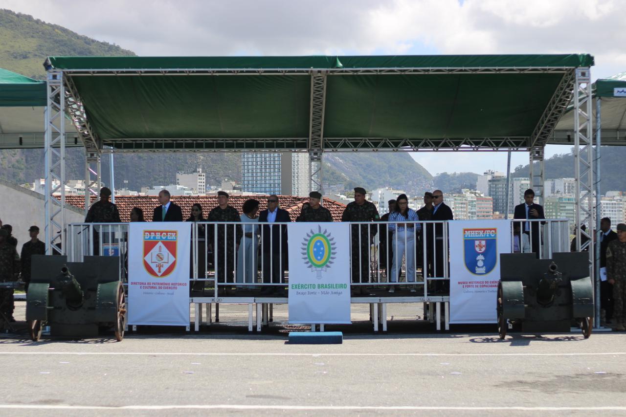 A solenidade contou com a presença do General de Brigada Almeida Júnior, diretor do Patrimônio Histórico e Cultural do Exército (DPHCEx), que presidiu a cerimônia de entrega de condecorações e diplomas para personalidades que se destacaram em suas contribuições para a Força Terrestre e o Museu Histórico do Exército e Forte de Copacabana.