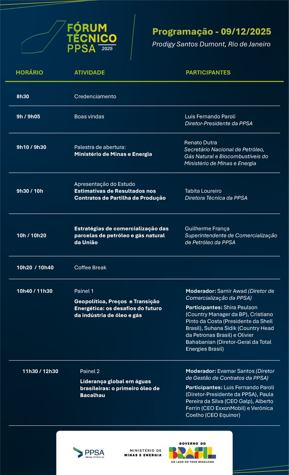 O encontro acontecerá na manhã do dia 9, no Hotel Prodigy Santos Dumont, e promete ser um espaço estratégico para o debate sobre as transformações do setor, as novas diretrizes de transição energética e as oportunidades de investimentos no país. As inscrições já estão abertas no site oficial da PPSA.