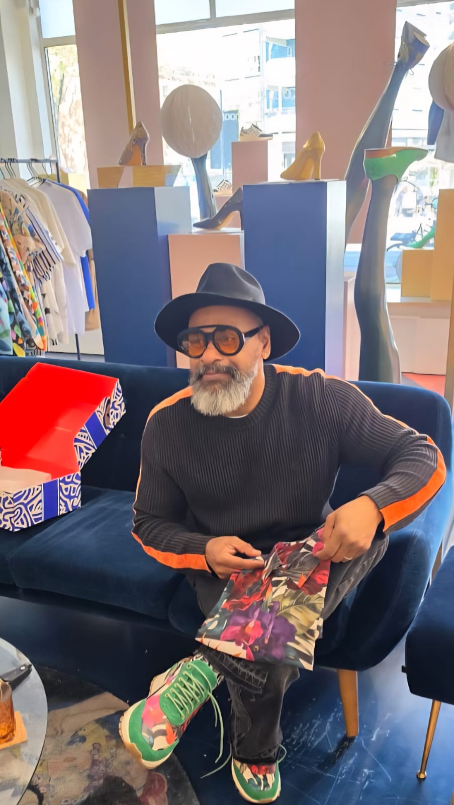 O encontro aconteceu após uma troca espontânea no Instagram, quando ambos perceberam afinidades estéticas marcadas pelo uso ousado de cores e estampas. As conversas evoluíram para uma proposta concreta de colaboração e o resultado promete impacto.
