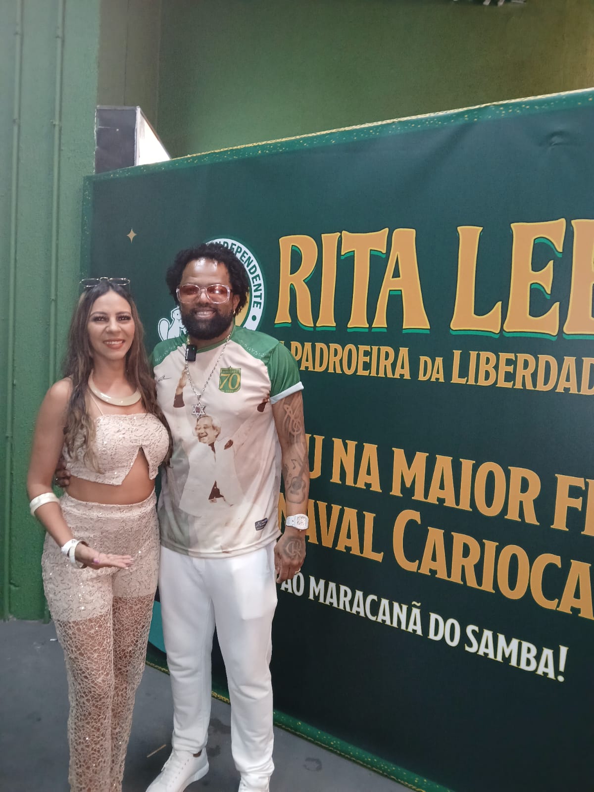 Nas fotos acima, vemos BRENDHA MOURA com o cantor Xande de Pilares, Andreia Paiva a Rita Lee, nas comemorações dos 70 anos da Mocidade Independente de Padre Miguel.