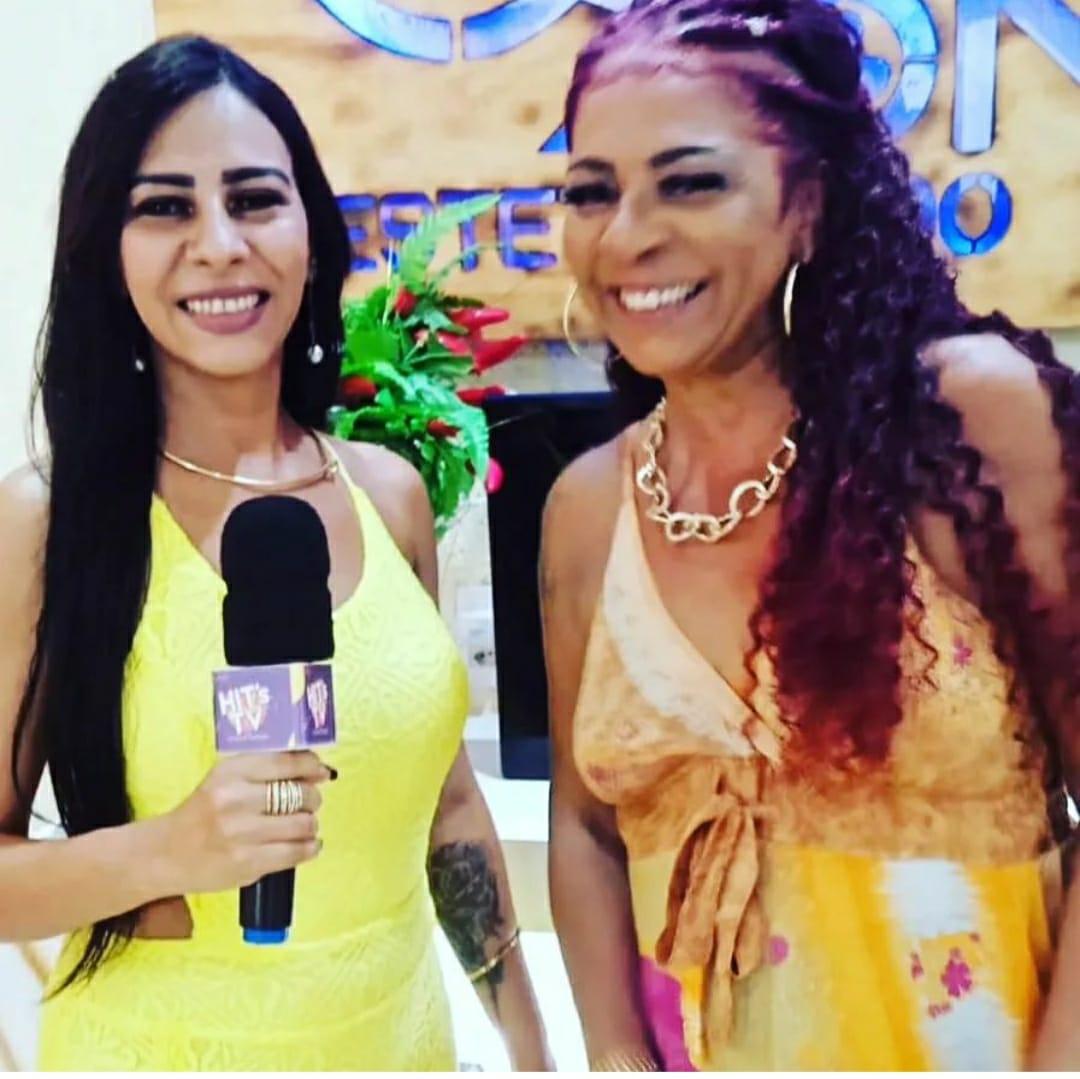 Na foto BRENDHA MOURA entrevista a cantora Denise Mattos, em um evento de beleza