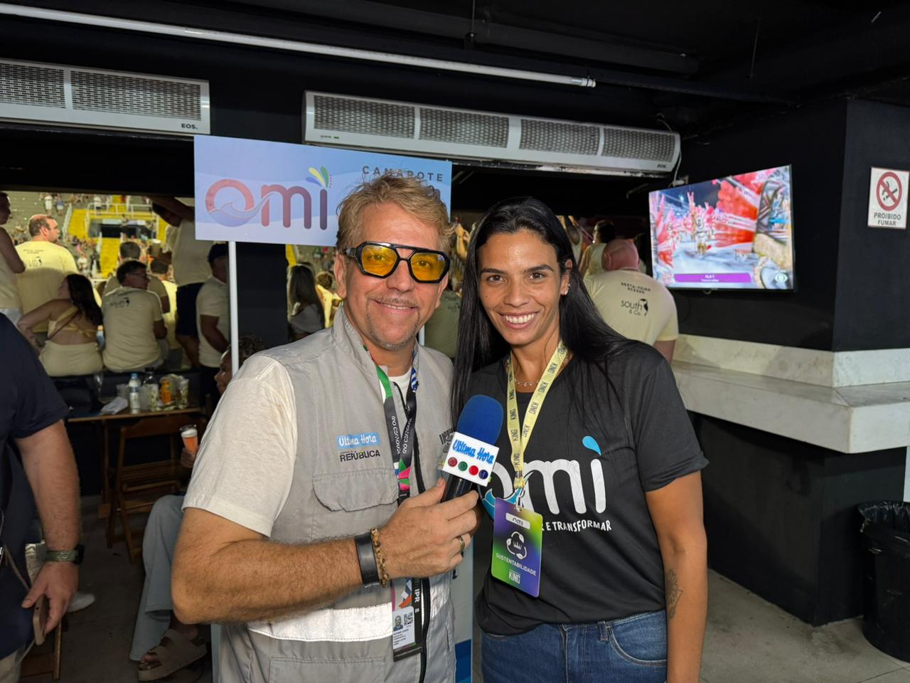 Do sofisticado Camarote do King, na Marquês de Sapucaí, Jessica, representante do Projeto Omìayê, concedeu entrevista exclusiva revelando como a iniciativa sustentável está transformando a vida dos moradores da Mangueira através da conversão de óleo de cozinha usado em produtos de limpeza ecológicos.