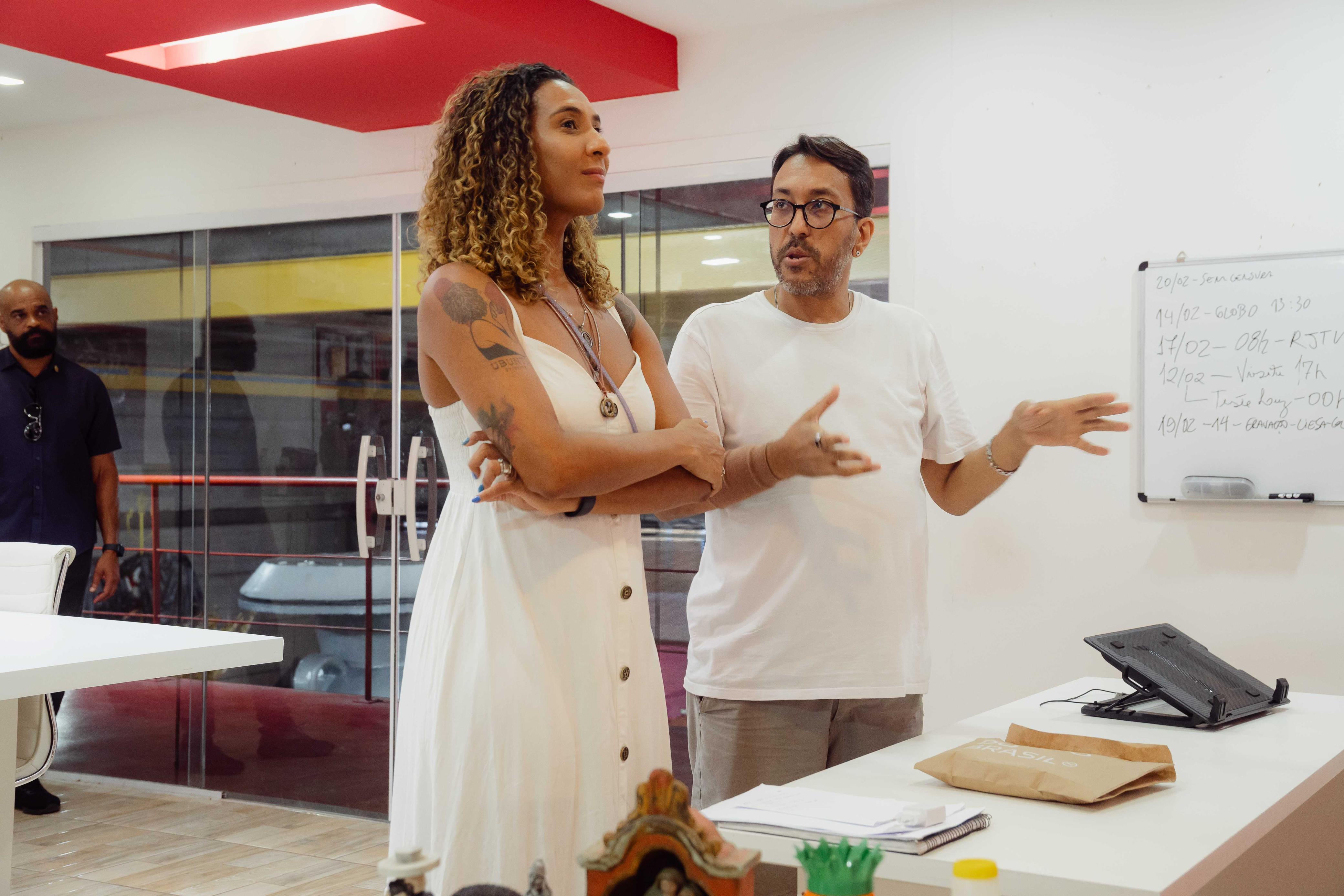 Recebida pelo carnavalesco Jorge Silveira, Anielle Franco conheceu as alegorias e detalhes do enredo que a vermelha e branca da Tijuca levará para a Marquês de Sapucaí neste carnaval. Em um momento marcante, Jorge Silveira destacou a importância da visita da ministra e a representatividade do enredo salgueirense: