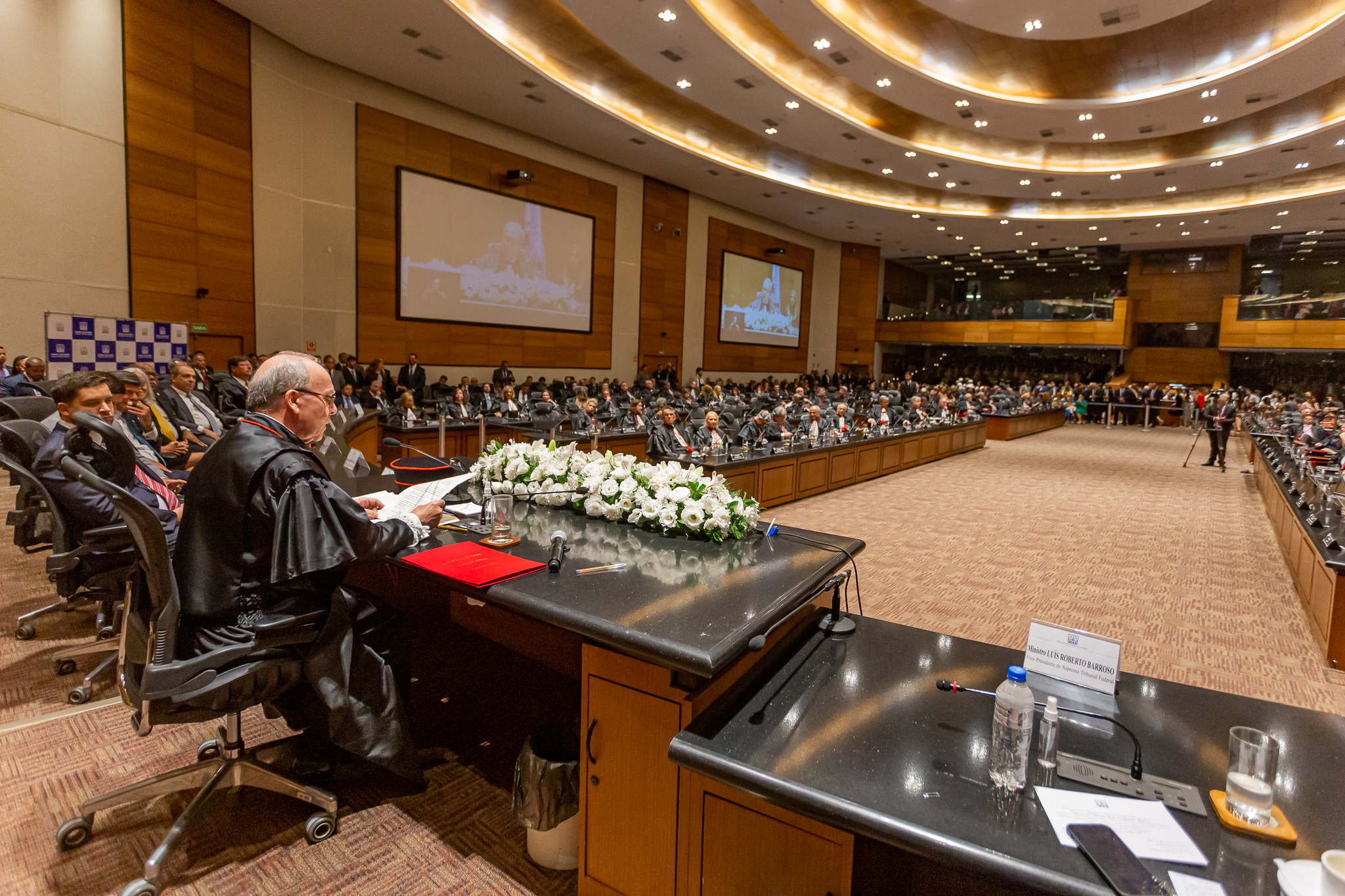 Entre as autoridades presentes à mesa principal estavam o ministros Luís Roberto Barroso, vice-presidente do Supremo Tribunal Federal; o ministro Luiz Fux (STF); a ministra Maria Thereza de Assis Moura, presidente do Superior Tribunal de Justiça (STJ); o ministro Luis Felipe Salomão, corregedor Nacional de Justiça; o ministro Benedito Gonçalves, corregedor-geral da Justiça eleitoral; o presidente do Congresso Nacional, senador Rodrigo Pacheco; o vice-governador do Rio, Thiago Pampolha; o presidente da Assembleia Legislativa do Rio, Rodrigo Bacellar; e o prefeito Eduardo Paes, entre outros.