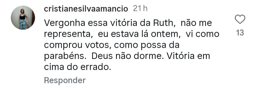 Em suas redes sociais, a militante registrou mais sobre sua revolta com o PED em Duque de Caxias: “Essa cidade é um laboratório que cria tudo o que não presta. A política não faz ninguém corrupto. A pessoa já é corrupta por natureza. A corrupção não vem da política, e sim das pessoas. Os canalhas estão em todos os lugares, mas essas pessoas não estão acima da justiça e da lei. Espero que providências sejam tomadas”