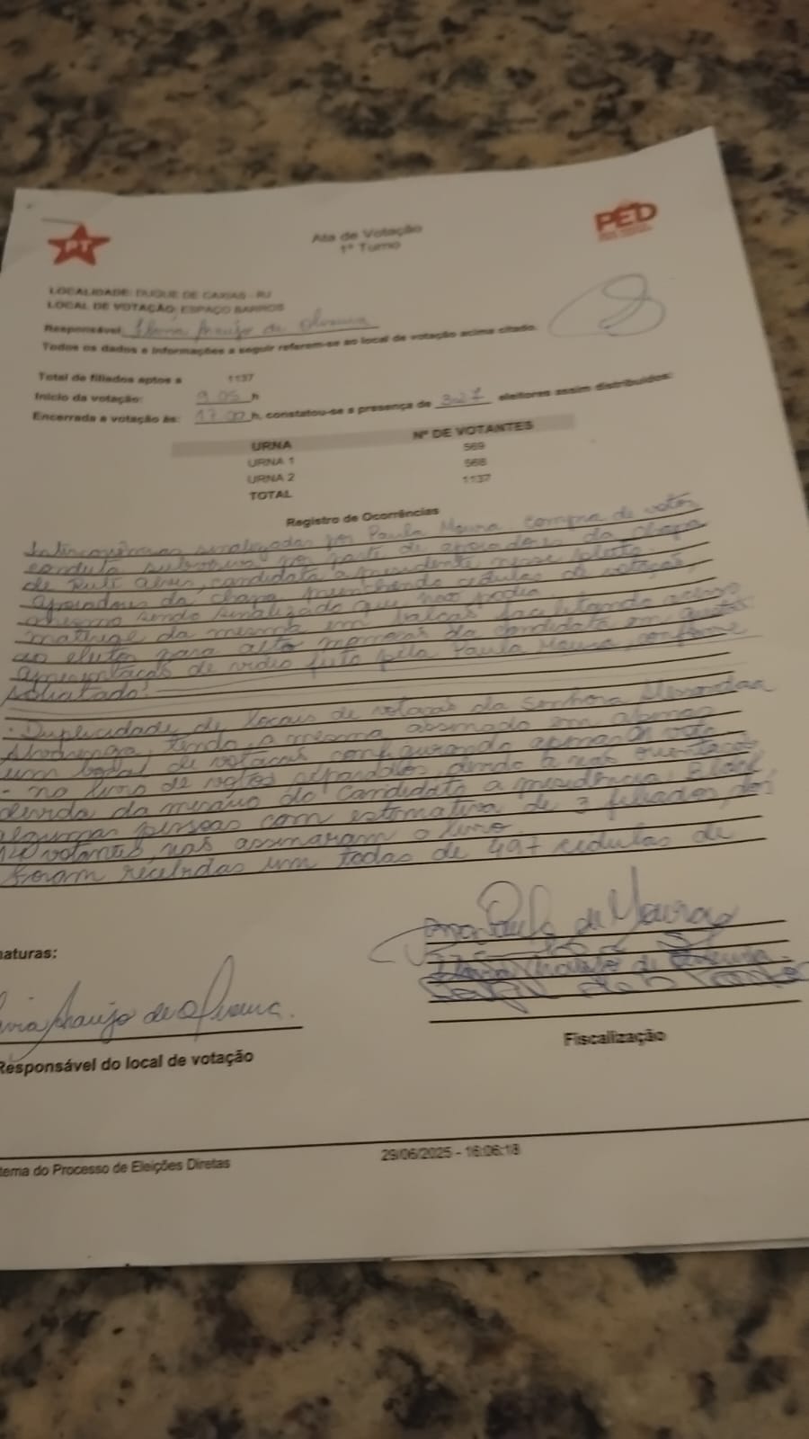 Além disso, o início da votação atrasou em quase duas horas porque simplesmente a lista dos votantes estava incompleta. O resultado desse caos foi que muitos militantes de verdade desistiram de votar, e os recém-filiados garrafinhas de Maricá cumpriram sua missão do dia: tumultuar o processo e garantir que o Cacique-Sheik do PT ficasse satisfeito. Basta ver o que o @sgnoticia registrou: https://www.instagram.com/reel/DLxicu2geDY/