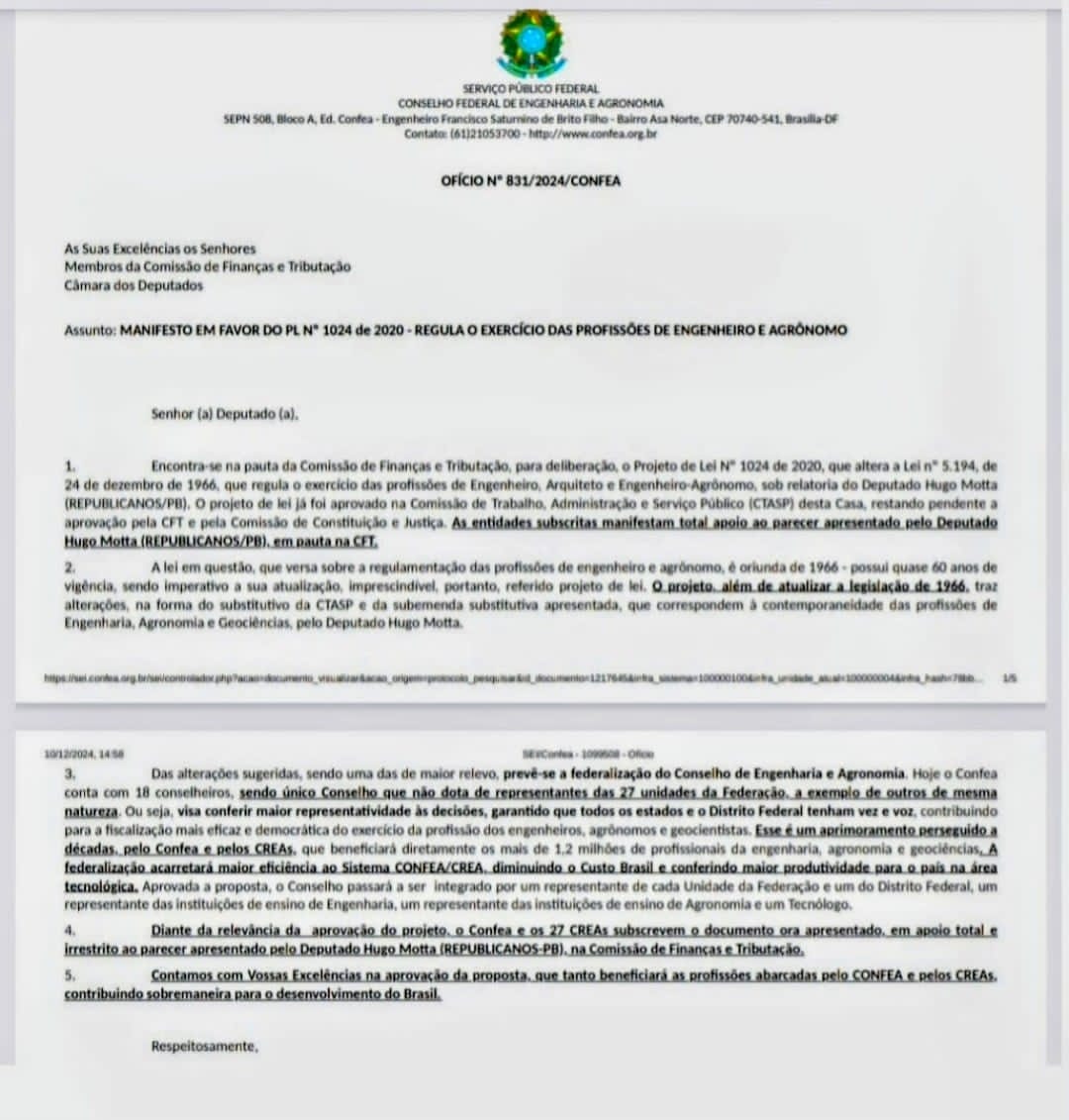A Lei 5.194/66, regula o exercício das profissões de Engenheiro, Arquiteto e Engenheiro-Agrônomo. Nos seus 59 anos de existência, não acompanhou a evolução e cunhou a marca de presidentes do Conselho de Engenharia que apoiaram a tão esperada transformação através do Projeto de Lei 1.024/2020.