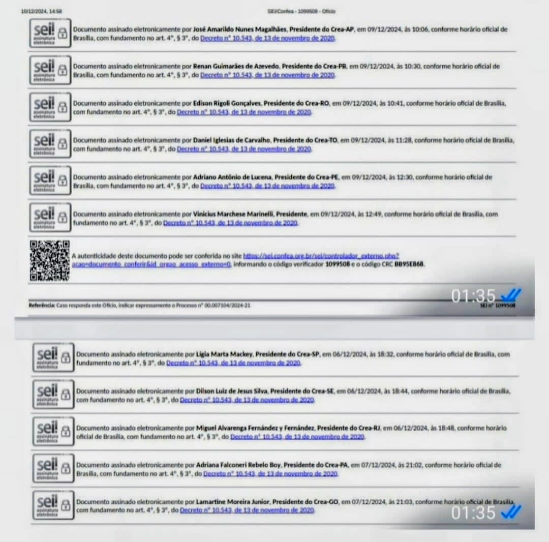 O presidente do Conselho Federal, Eng. Vinícius Marchese, descreveu sua trajetóriada desde setembro/2016, recém-chegado à presidência do CREA/SP, depois assumir o mandato tampão da presidência com o afastamento do Eng. Kurimori, por ação judicial impetrada pelo CONFEA, que era presidido na época pelo seu tio.