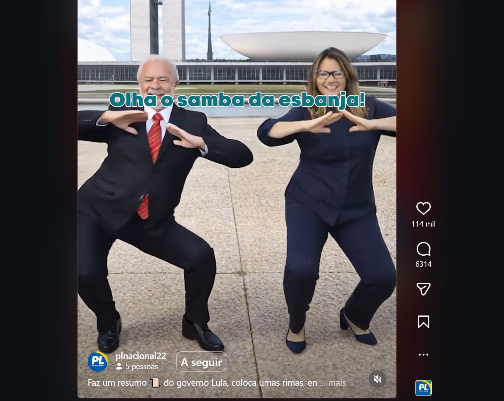 Pleno.News - Vídeo feito por IA do Partido Liberal Fotos: Reprodução Instagram
