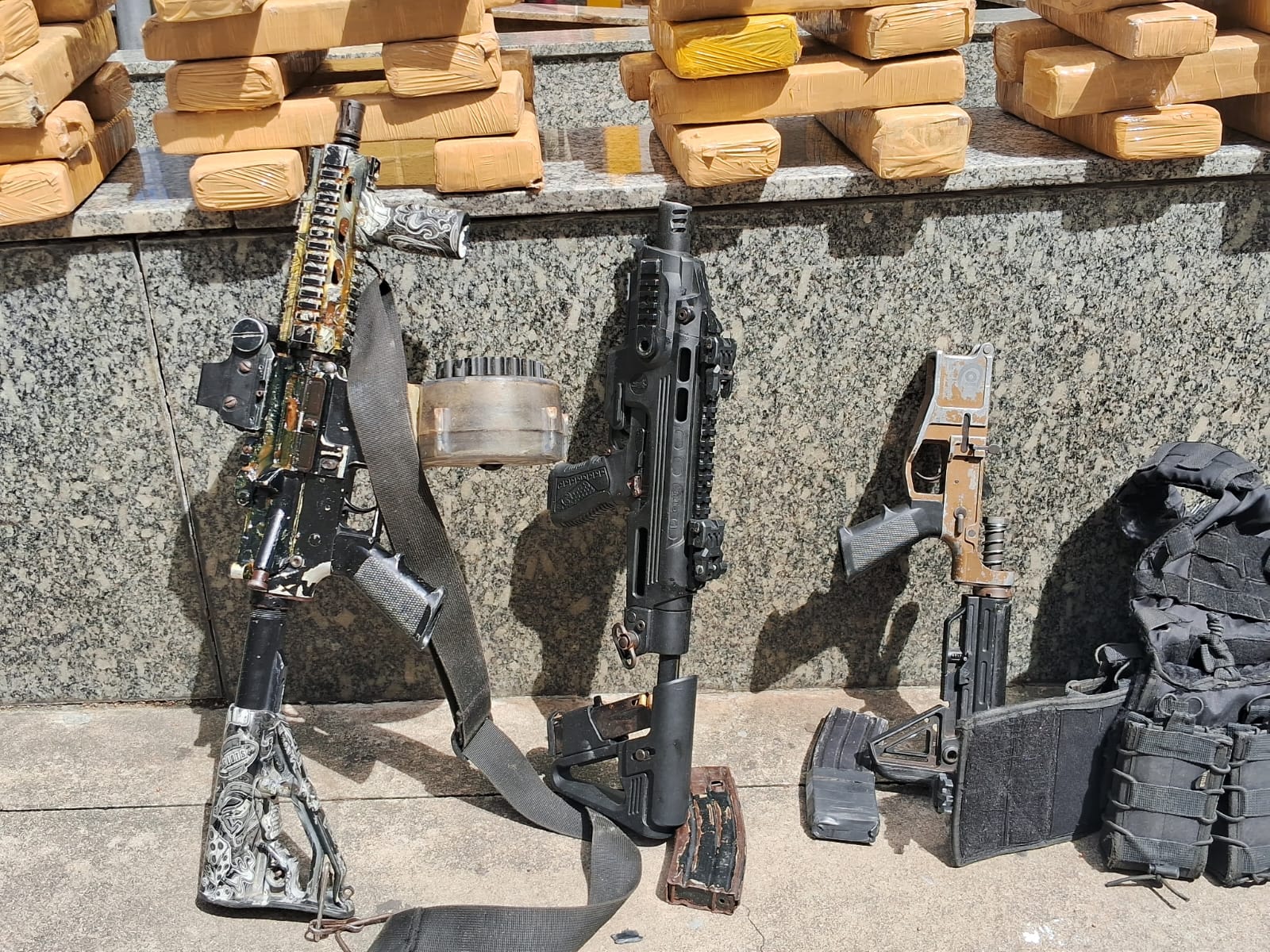 No cômodo, os agentes apreenderam dois fuzis, uma pistola com kit rajada, rádios transmissores e aproximadamente 200kg de maconha. O prejuízo para o tráfico de drogas está avaliado em cerca de R$ 300 mil.