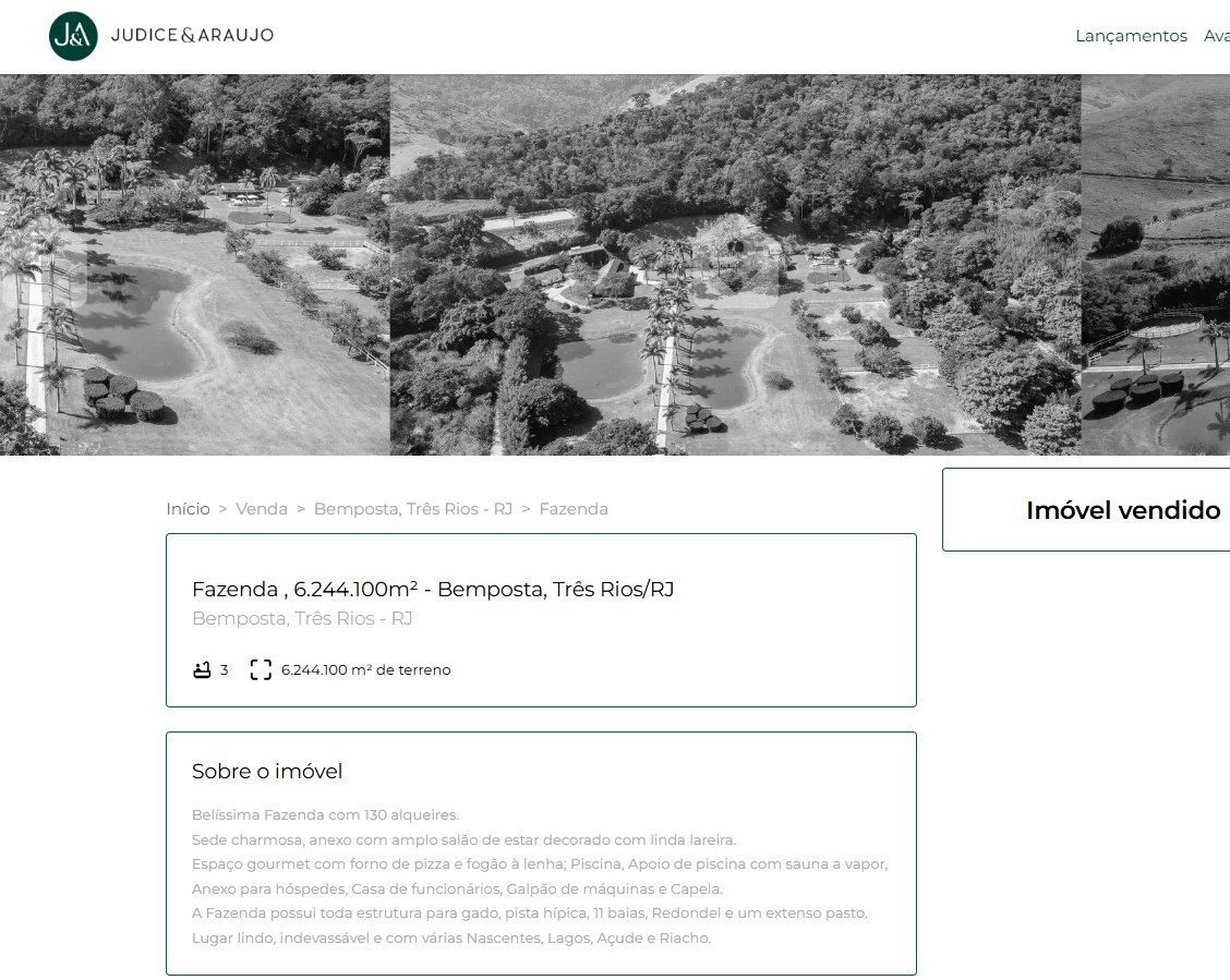 O projeto empresarial luxuoso de Gabriela Lopes Siqueira, que segundo informa ser financiado pela venda de parte do Camarote Favela na Sapucaí, o que parece ser um bravata, prevê a criação de um empreendimento de alto luxo em uma fazenda centenária em Bemposta, Três Rios, na Serra do Rio.
