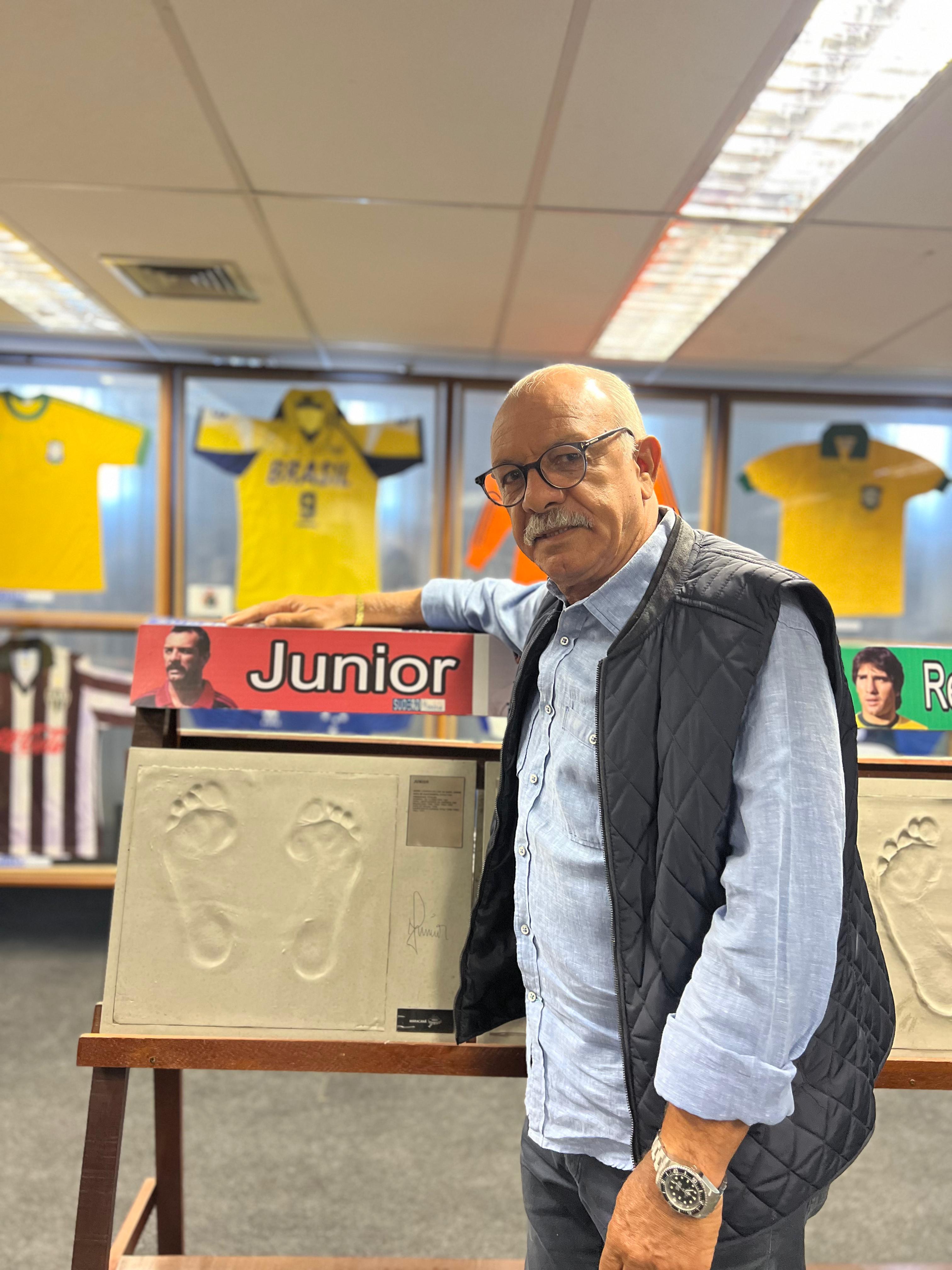 Recordista de partidas pelo Flamengo com 876 jogos, o ex-jogador Junior visitou o Museu da Suderj na manhã dessa quarta-feira (3/8), para gravar mais um episódio do podcast Suderj.Informa. Convidado pelo Governo do Estado do Rio de Janeiro, por meio da Suderj, o atual comentarista do Grupo Globo, campeão da Libertadores e Mundial de Clubes, em 1981, esteve no espaço localizado no Centro, onde tirou fotos, autografou camisas e contou histórias dos 20 anos de carreira no futebol.