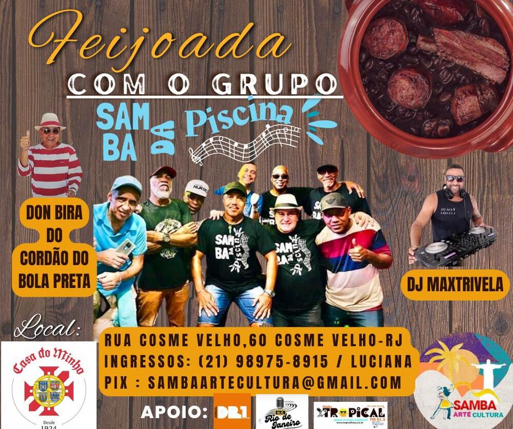 O evento promete uma experiência única, com uma deliciosa feijoada preparada pelo Restaurante Costa Verde, além de um espetáculo de samba de qualidade, protagonizado pelo talentoso grupo Samba da Piscina.