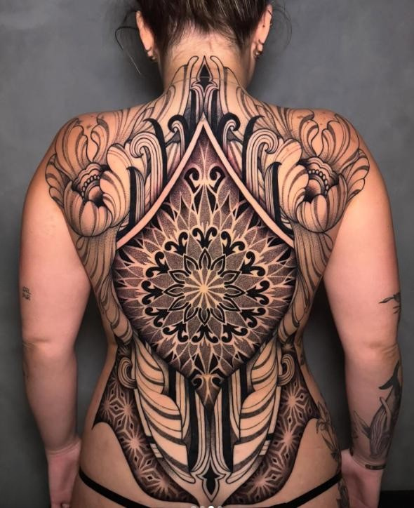 Tatuagem de Thaysa Lucena, ganhadora do segundo lugar na categoria Ornamental na Empire State