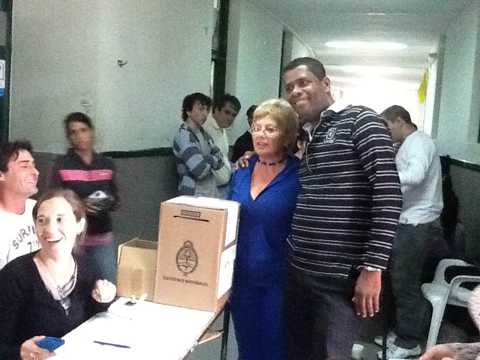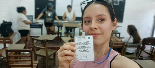 Onde estuda, em Santa Cruz de La Sierra. E por exercer a atividade de cidadania para fiscalizar as eleições, ganhou 20 pontos em suas notas.